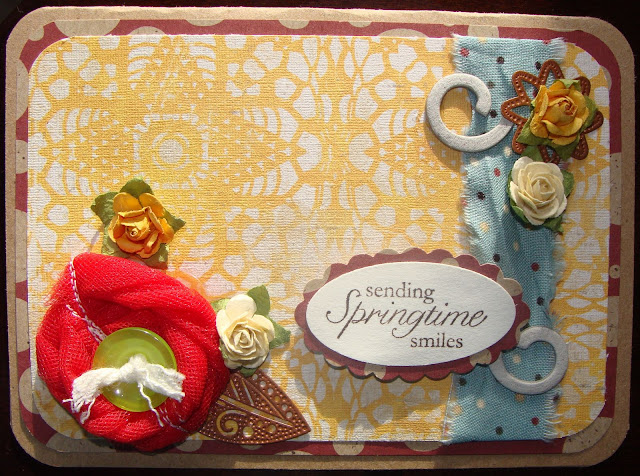 Isn't this amazing?! The fabric, the pattern yellow paper, the prima flowers and to top it off the tulle flower!