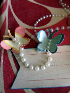 Finally, I was ready for the fun part - decorating my altered box! I simply cut out parts of the Borders Page and the Elements Page from the Salt Air Collection and painted them with crackle paint so as to maintain my vintage feel. I used a butterfly punch, a couple of flowers that I layered together, a starfish charm, and a pearl flourish to complete the top. For a finishing touch, I adhered pom-pom ribbon around the sides of my box.